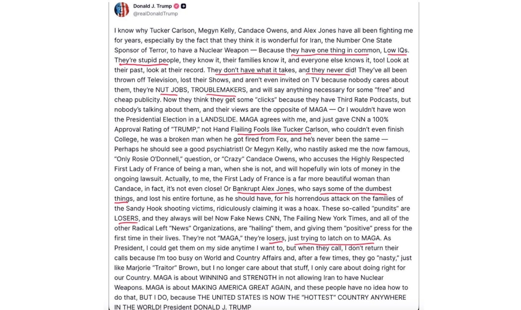 Clearly such criticisms have landed, because on Thursday Mr. Trump lashed out in a long Truth Social post: