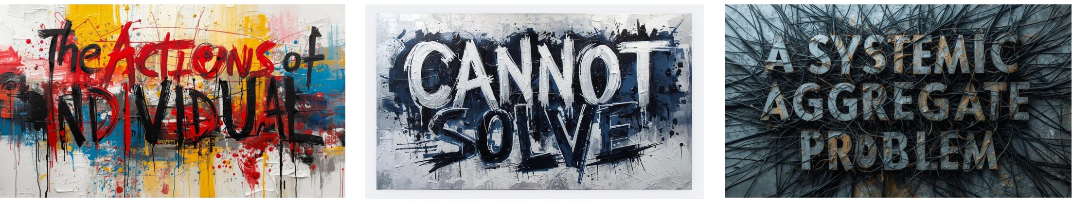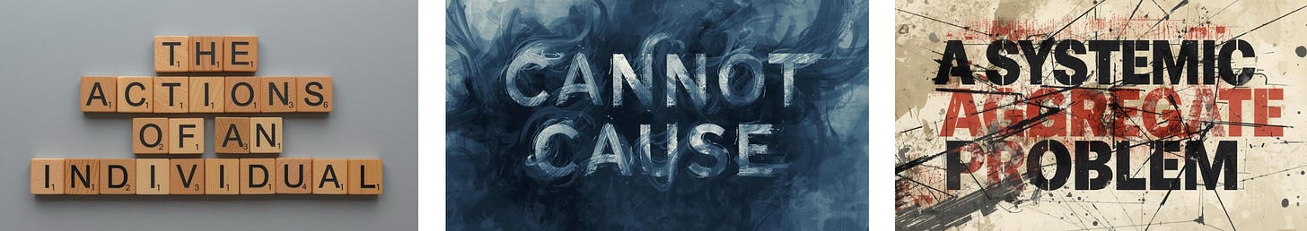 There’s an even more important flip side to that: the actions of an individual cannot solve a systemic aggregate problem.
