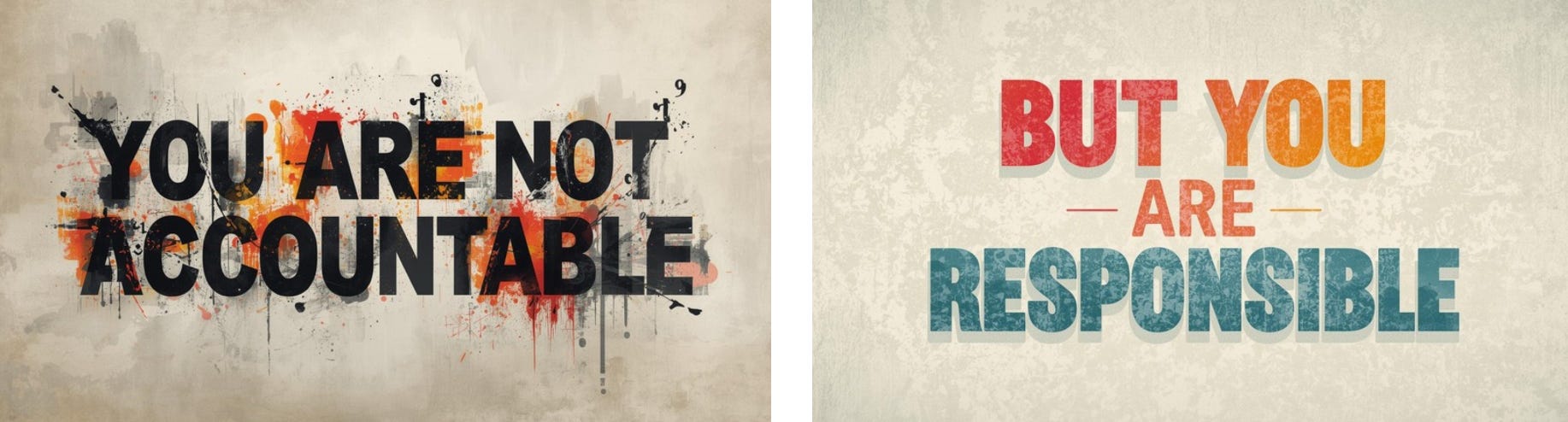 As individuals we are not accountable for causing it. But we are responsible for being a part of overcoming it by being a part of collective action over time.