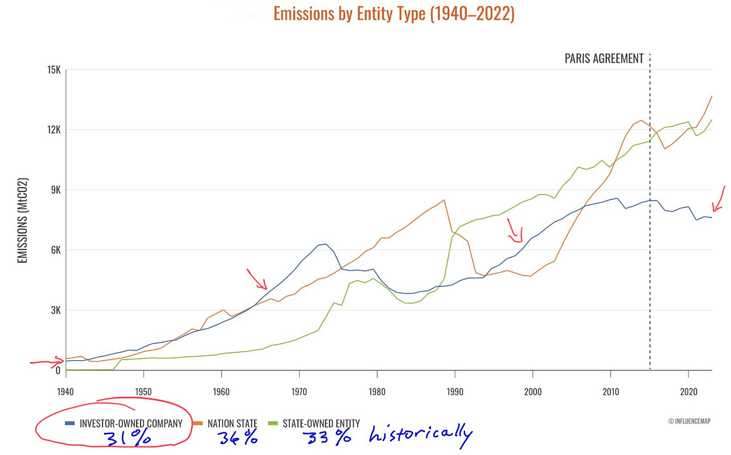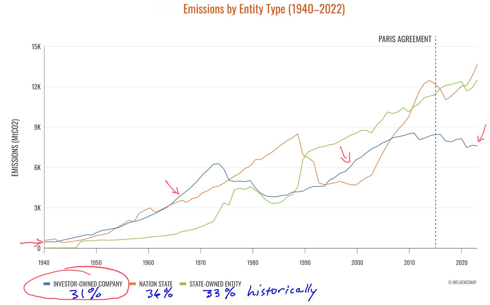 Looking at fossil fuel climate pollution from oil, methane, and coal between 1940-2022, this class is has emitted 31%.
