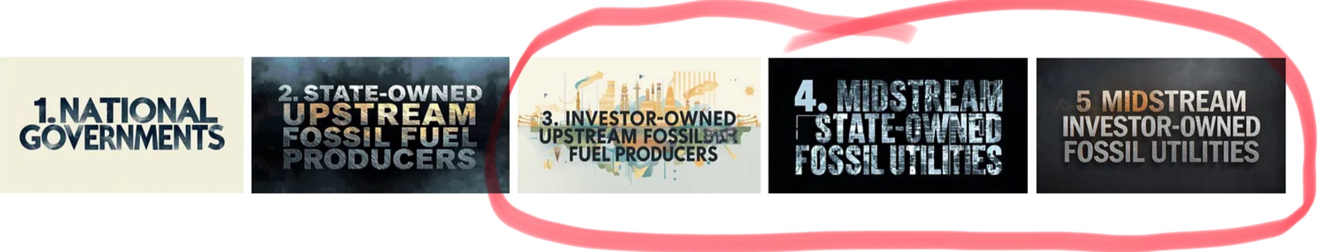 3) upstream fossil fuel producers that are investor-owned corporations (both public and private);