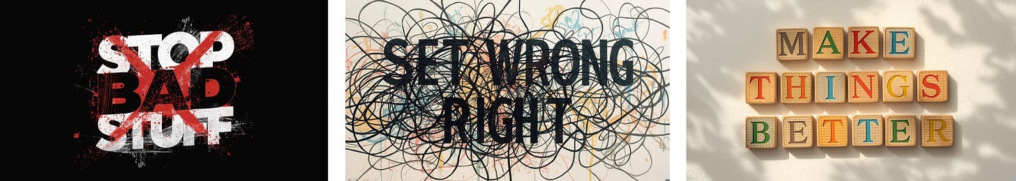 And what is that for these generations? A better life, a better world. To make this better world we must also stop bad stuff and set wrong right. So to give them their due, we must do the three actions of justice.
