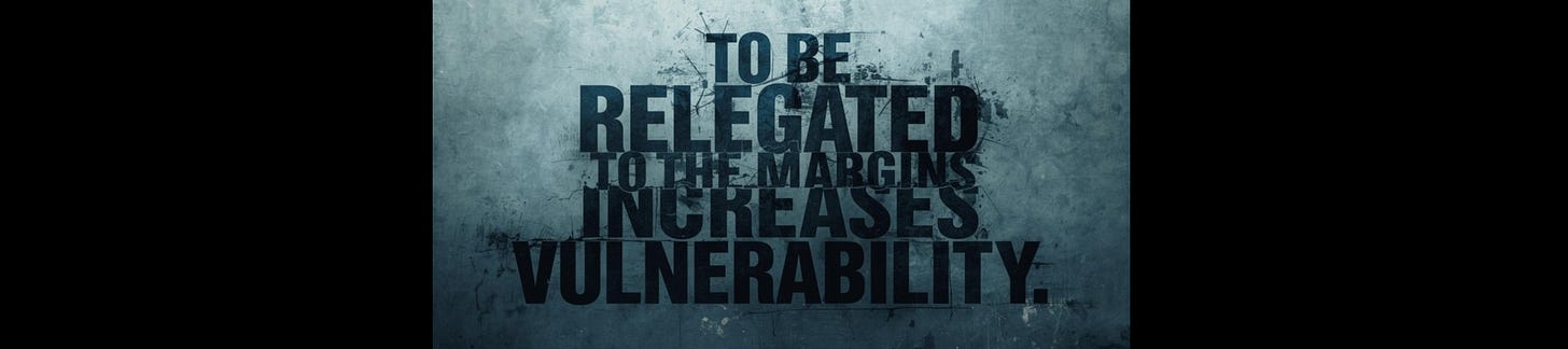 To be marginalized is to be relegated to the margins, which increases vulnerability.