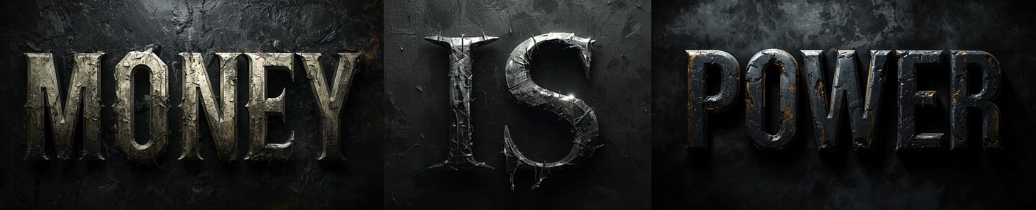 Money gives a person power — power to buy and own stuff and exclude others; power to intimidate and bully; power to influence and corrupt politics and elect politicians; power to get away with crimes, even murder; but also power to make the world better and more beautiful.
