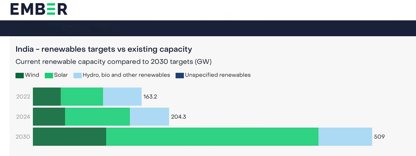 Thankfully, things are moving in the right direction. India has pledged to triple its renewable capacity by 2030. As Ember reports: