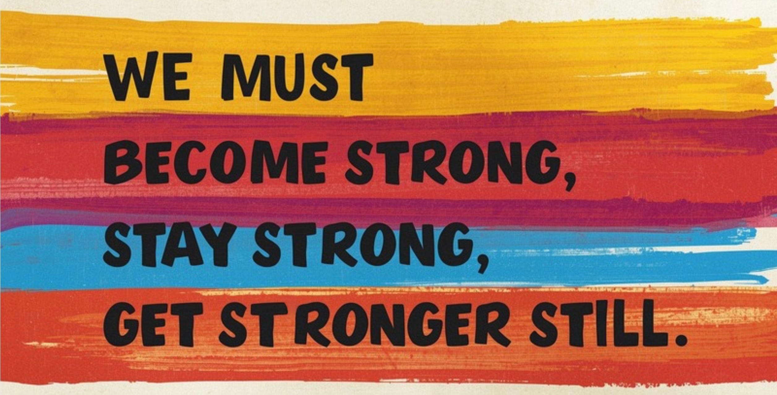 We must become so strong that this current assault on our future will not stand. We must become strong, stay strong, and get stronger still. We must fulfill our potential and our destiny to be the greatest and most long-lasting social change movement in the history of the world — a story that writes itself and cannot be suppressed or missed or ignored.