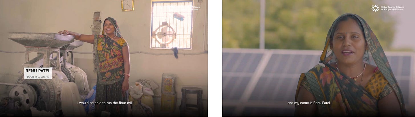 YouTube videos tell success stories, like that of Renu Patel, a female “entrepreneur” and small mill owner in India who, by utilizing what she calls her “solar power plant,” is now producing double the flour at a lower cost with than she did with a diesel generator.