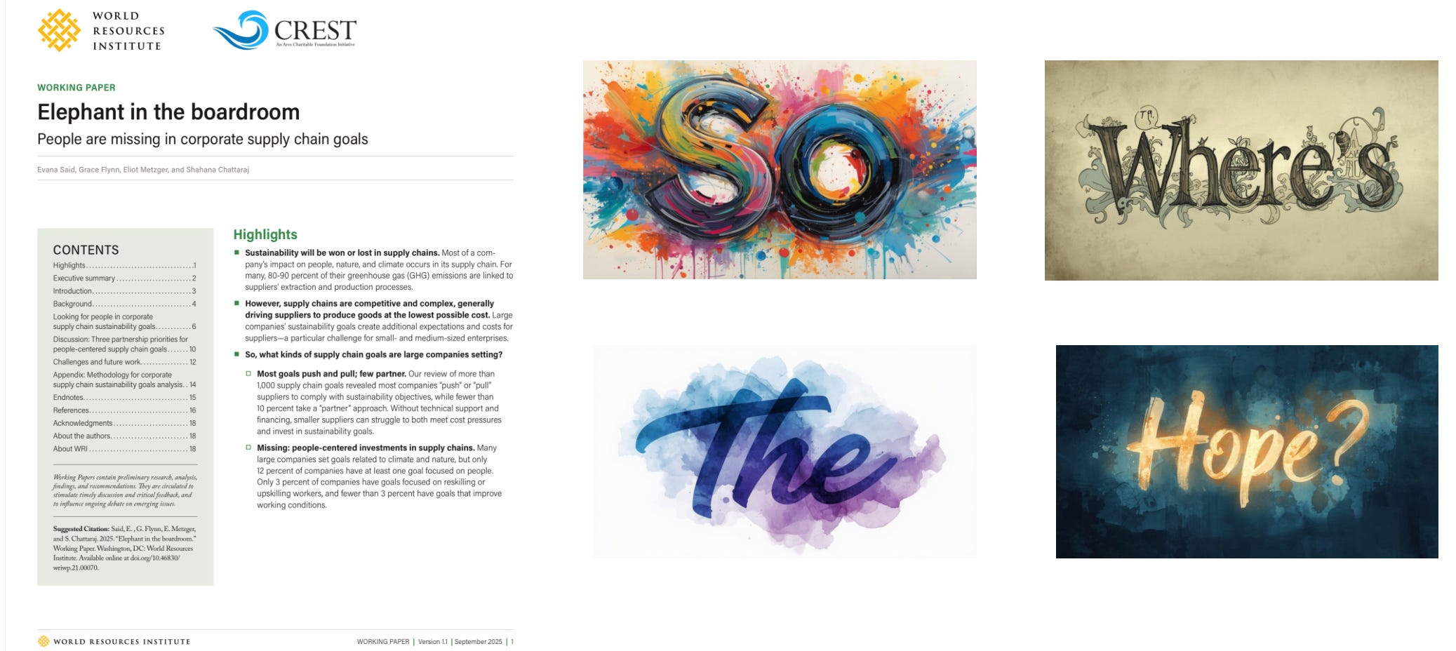 Now what got me started on this riff about hope-potential is a recently published report from the World Resources Institute (WRI) that studied nearly 700 large corporations and their supply chains.