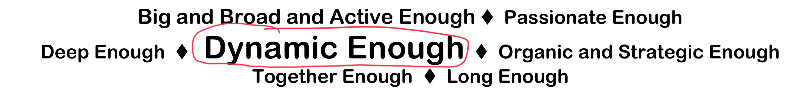 By dynamic enough, our fourth characteristic, imperative, and Movement-building goal, I mean moving forward with a healthy, pragmatic relationship between:
